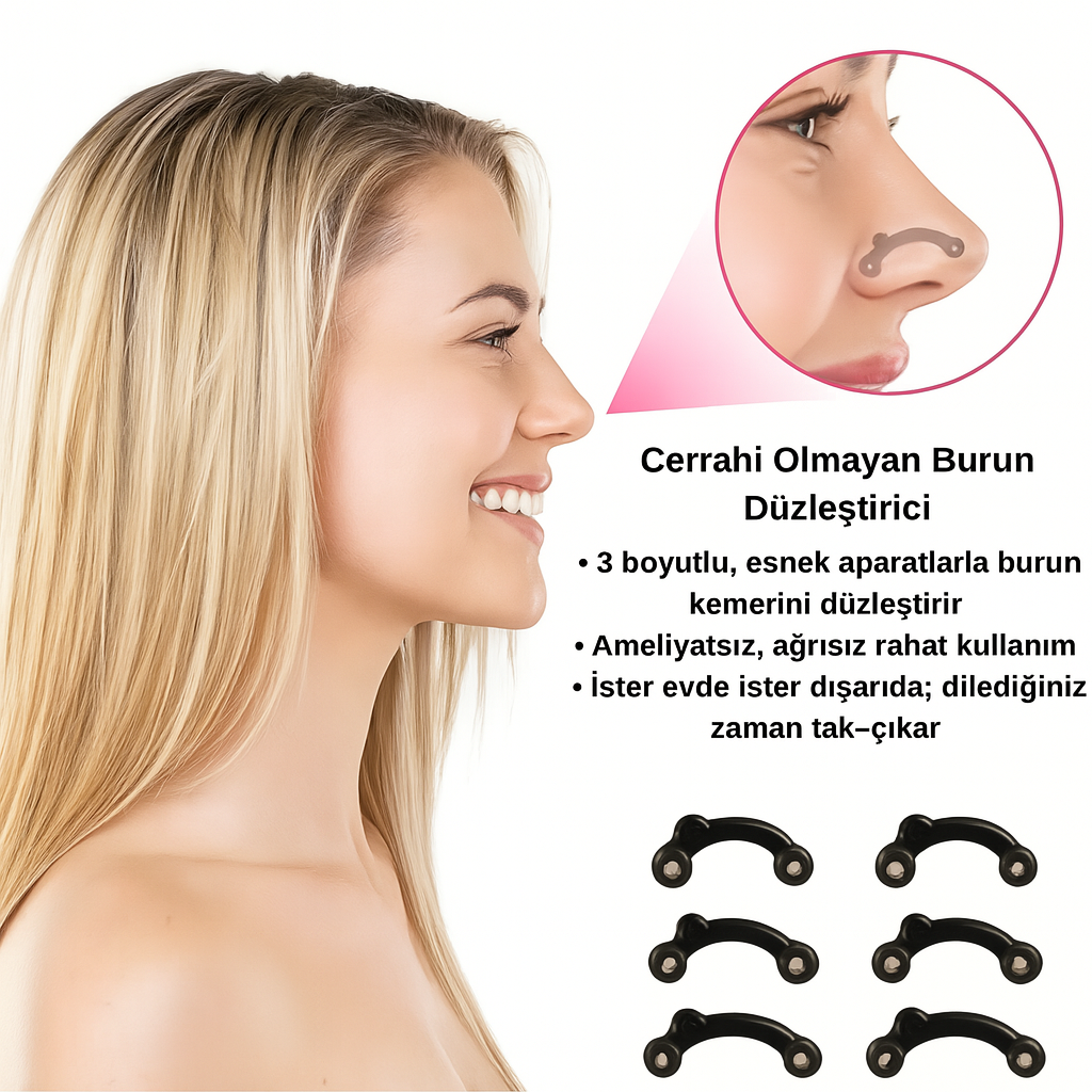 Seni yetersiz hissettiren burnun geride kaldı. Burun kaldırma kitiyle özgüvenini tazele ve her ortamda ışıl ışıl parla🌸.